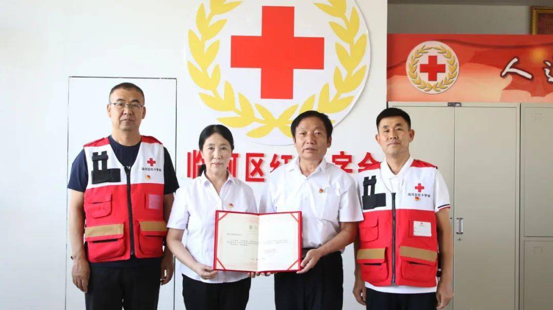 2022年,巴彥淖爾市臨河區(qū)紅十字會負責人為敖其爾(右二)頒發(fā)榮譽證書